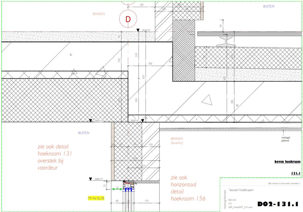 Het ontwerp is van schets tot werktekeningen ontworpen. Er zijn diverse wijzigingen geweest op verzoek van de welstandscommissie en de opdrachtgevers. Maar de kenmerkende onderdelen zijn telkens bewaard gebleven: Het overstek aan de straatkant, de open hoek naar de tuin en het grote dakterras langs het slaapblok op de verdieping.